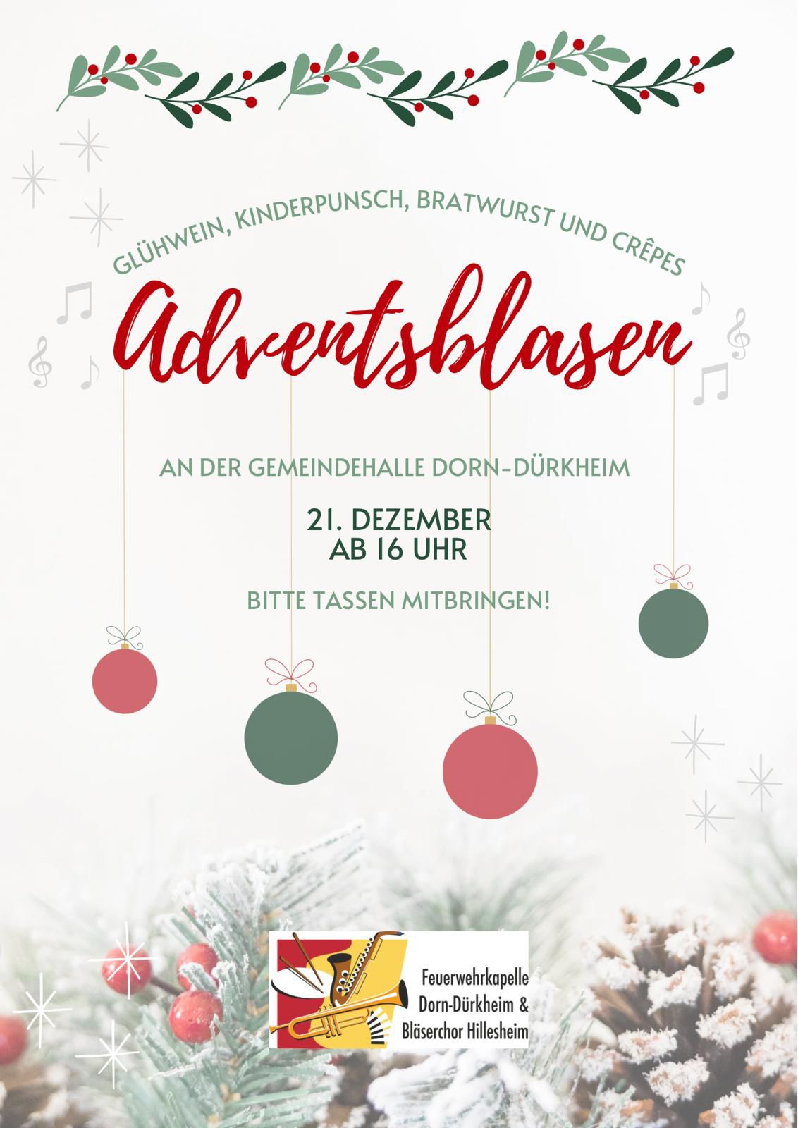 Die Feuerwehrkapelle Dorn-Dürkheim / Hillesheim lädt ein zum traditionellen Adventsblasen