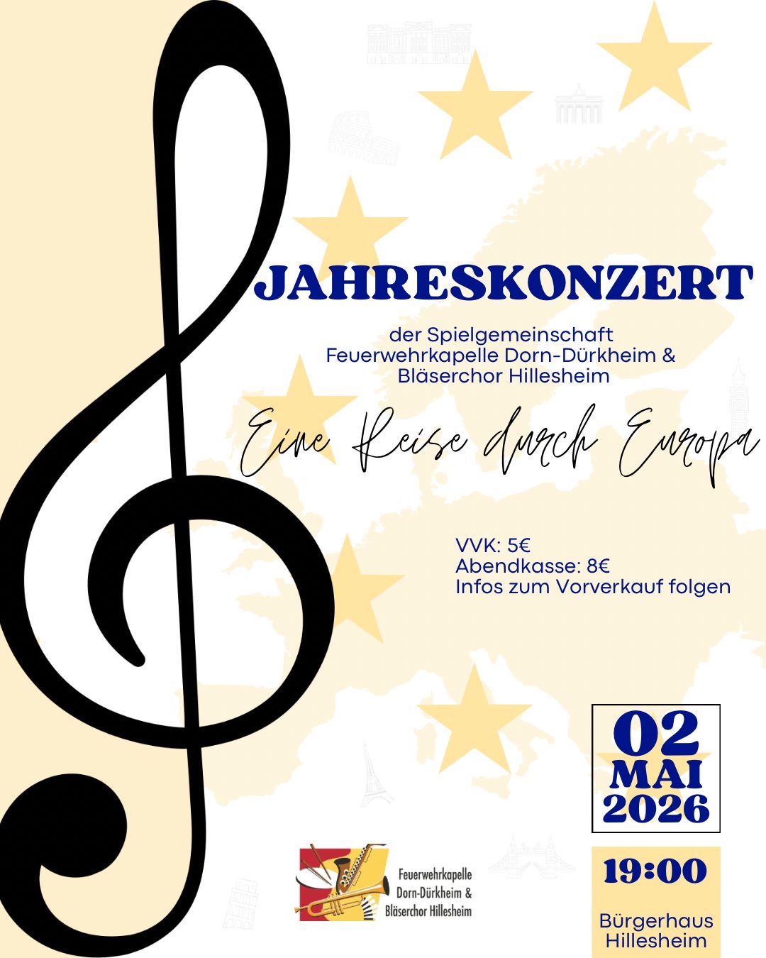 Die Spielgemeinschaft Feuerwehrkapelle Dorn-Dürkheim und der Bläserchor Hillesheim laden herzlich zum Jahreskonzert ein.